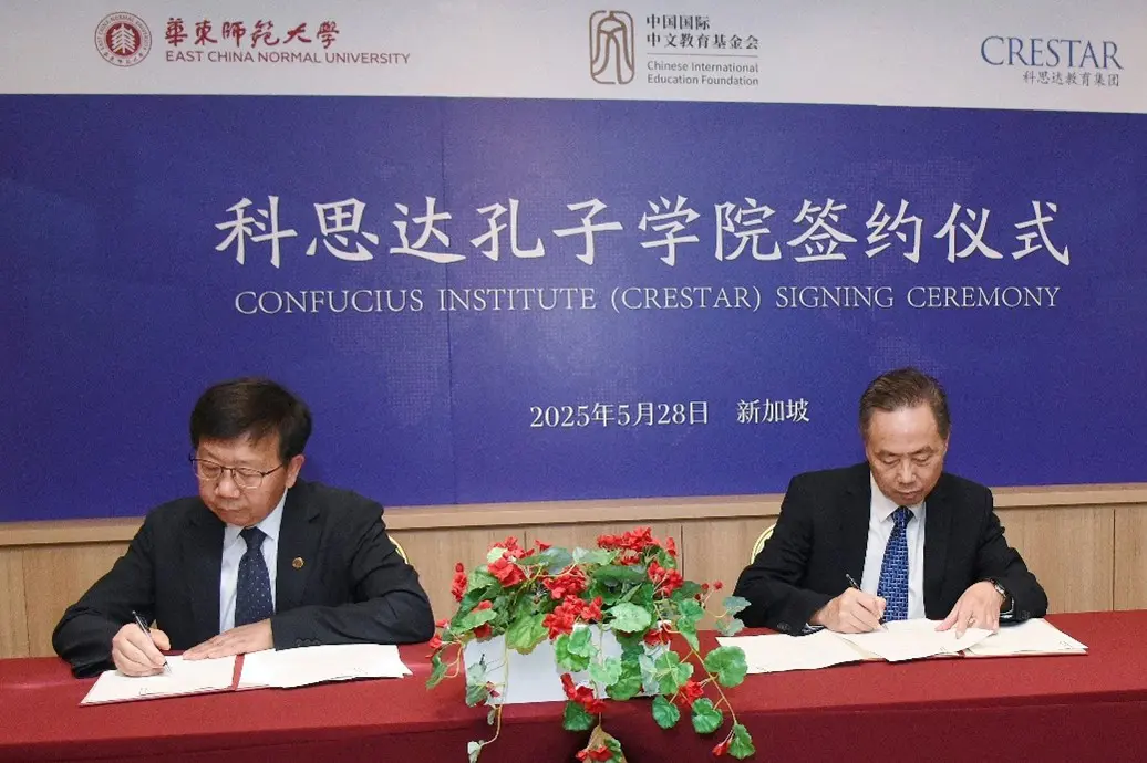 On 28 May 2025, President of East China Normal University (ECNU), Professor Qian Xu-Hong led a six-member delegation to visit Crestar Education Group (CEG) in Singapore. A signing ceremony was held to officiate the establishment of Crestar Confucius Institute.