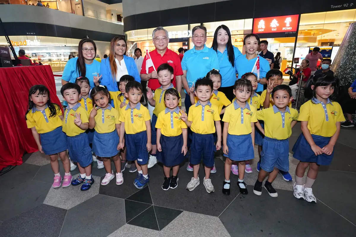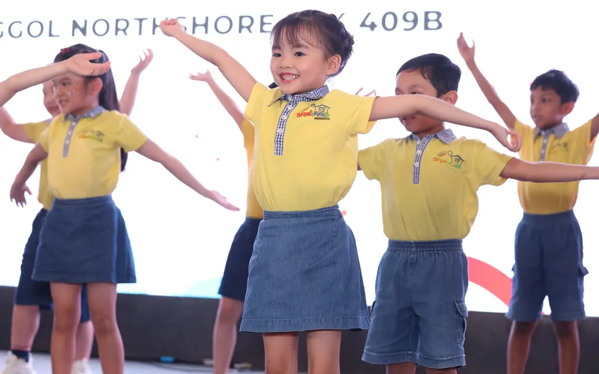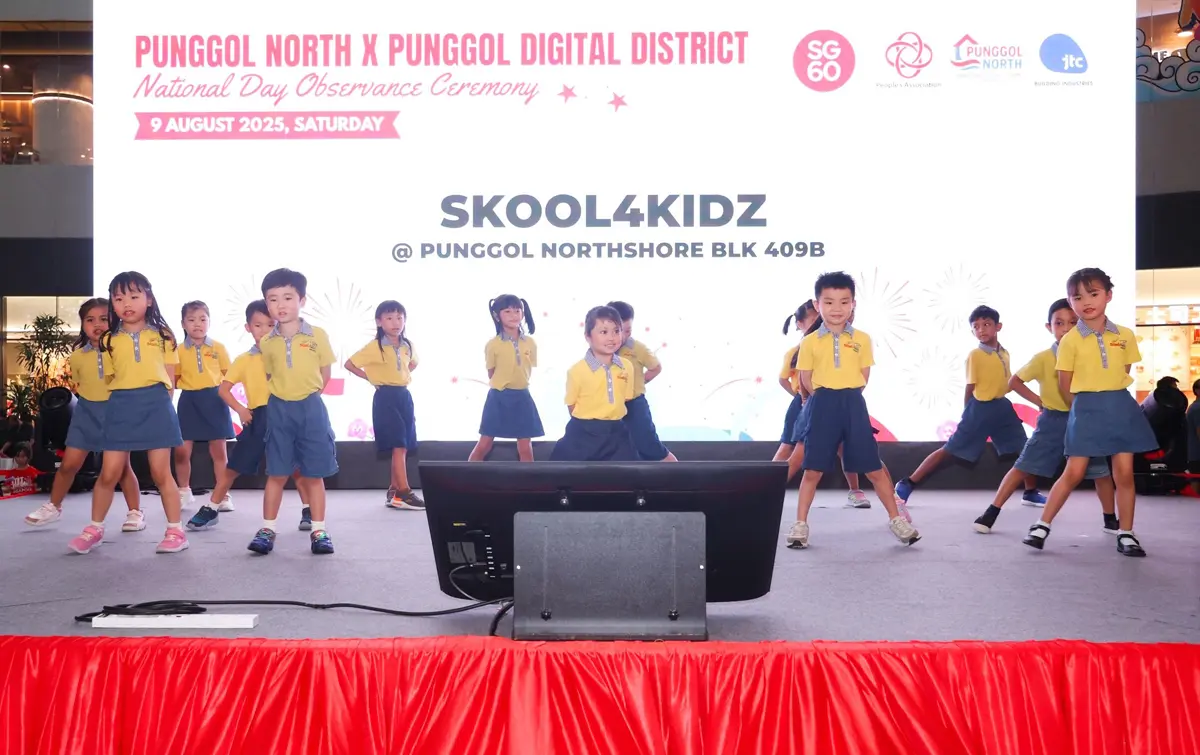 15 Kindergarten 2 (K2) children from Skool4Kidz Preschool @ Punggol Northshore performed at Punggol Coast Mall on 9 August 2025. They danced to “Shine Your Light” in celebration of Singapore’s 60th National Day. The event’s Guest of Honour was Deputy Prime Minister Mr Gan Kim Yong. He joined in the celebrations and cheered on our preschoolers during their performance.