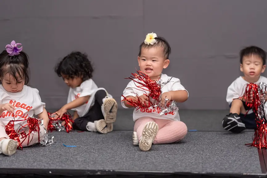 Kinderland children, from infant to kindergarten, stole the show with heartfelt performances to favourites like “Chan Mali Chan” and “Sing Singapore.” Our Kindergarten children sang and danced while our little toddlers from infant care swayed and shook their poms- poms to the music.